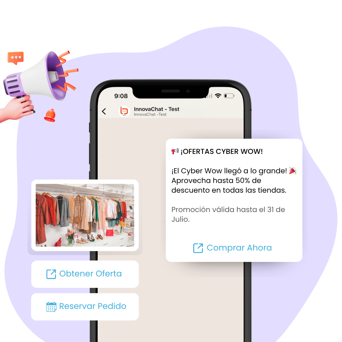 Envía campañas promocionales, catálogos y anuncios a tu base de contactos con plantillas personalizadas y seguimiento de resultados. Todo desde un solo panel de control intuitivo.